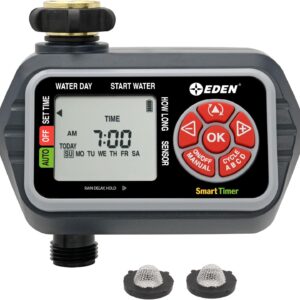 The timer automatically shuts off the water after the timer is finished. Water for up to two hours, depending on your plant’s needs. Use the manual feature to use the faucet or hose on demand.